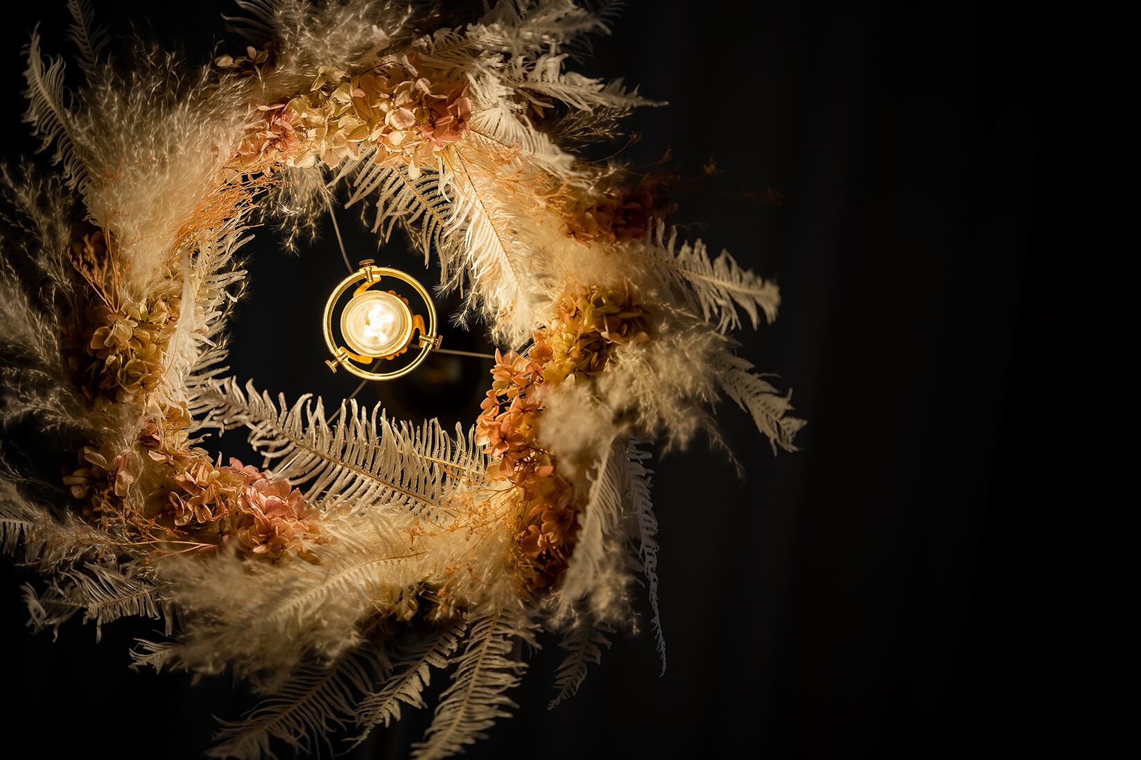 紫陽花・山しだ / リース横型ドライフラワーシャンデリア / 品番 s1_2 / 照明・インテリア