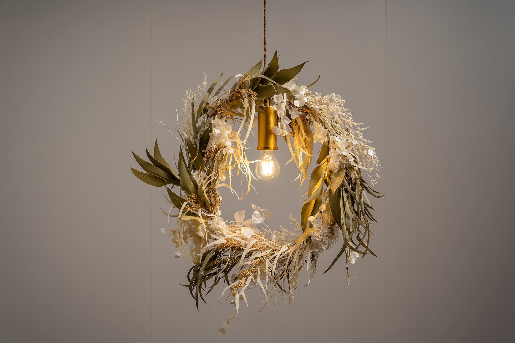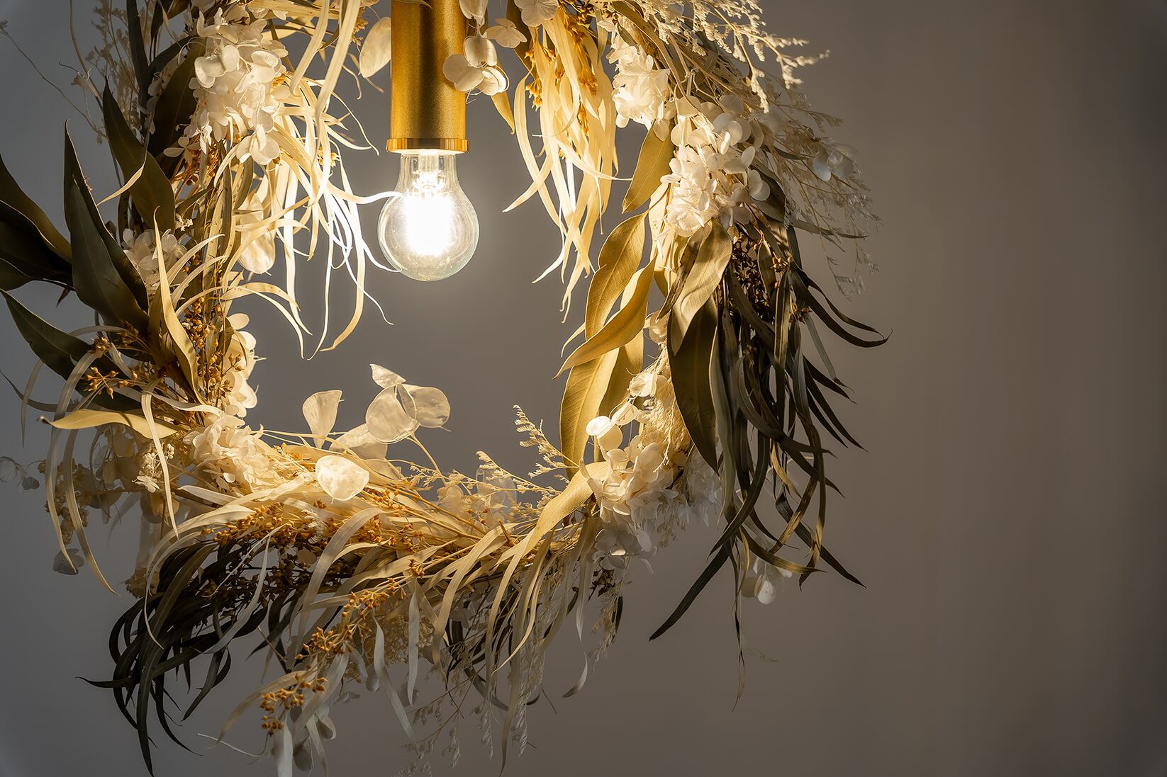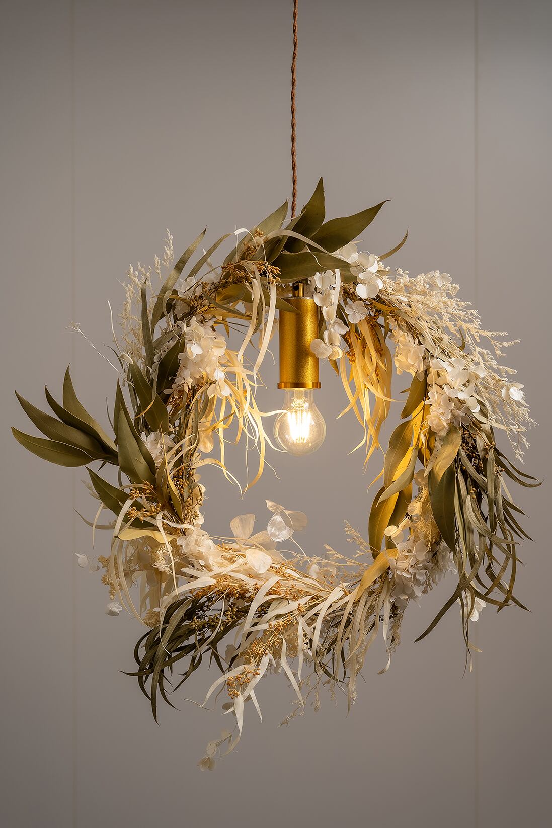 カスピア・ユーカリ / リース縦型ドライフラワーシャンデリア / 品番 s1_3 / 照明・インテリア