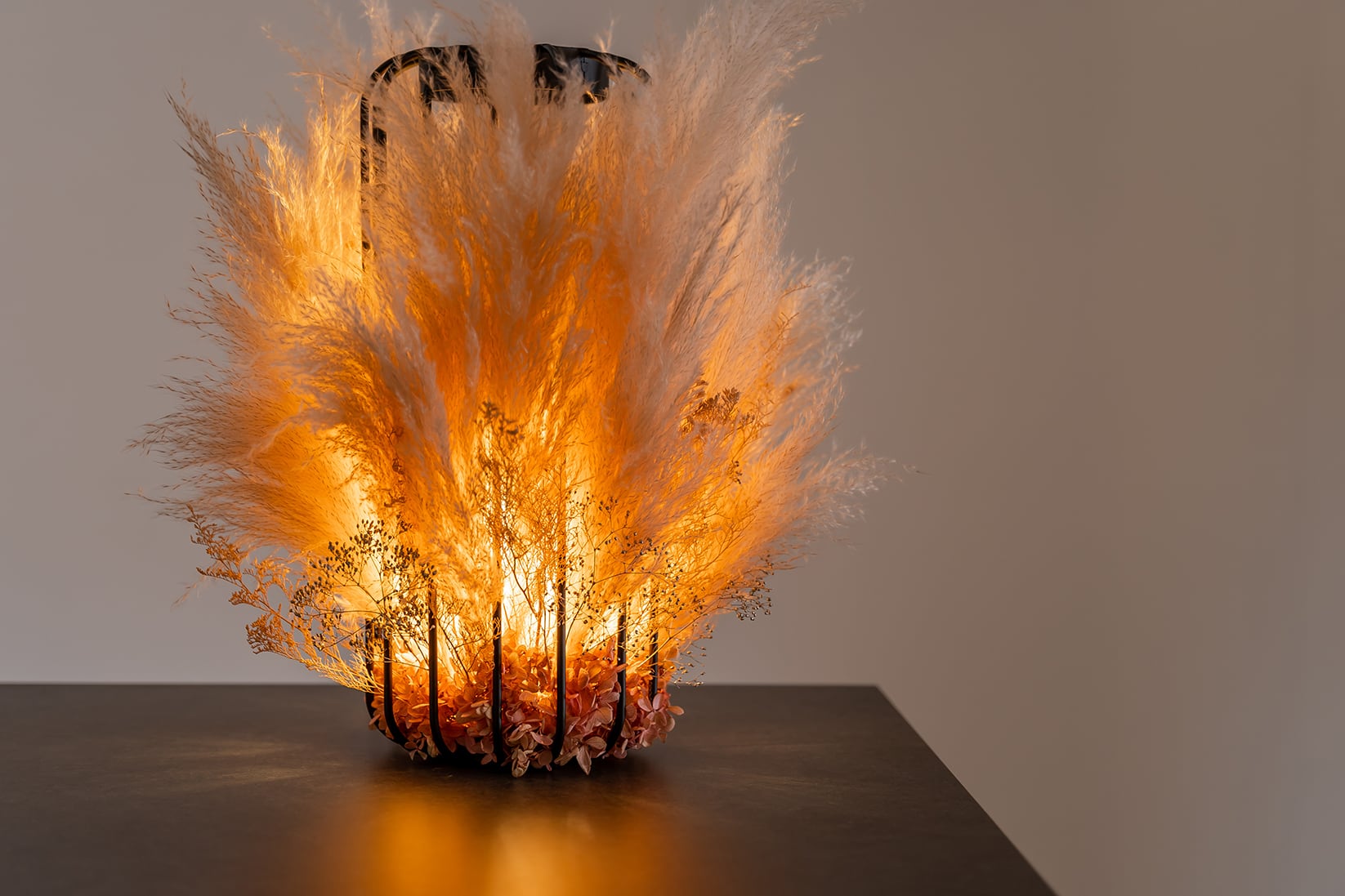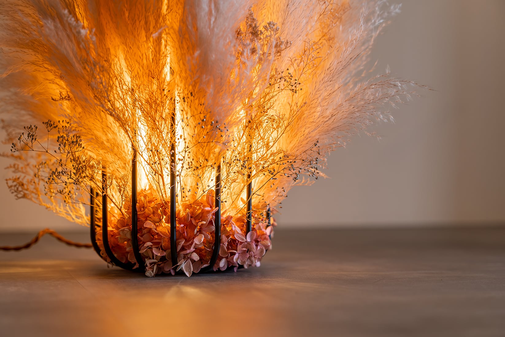 ビックテールリード・かすみ草 / 置き型ドライフラワーシャンデリア / 品番 s2_13 / 照明・インテリア