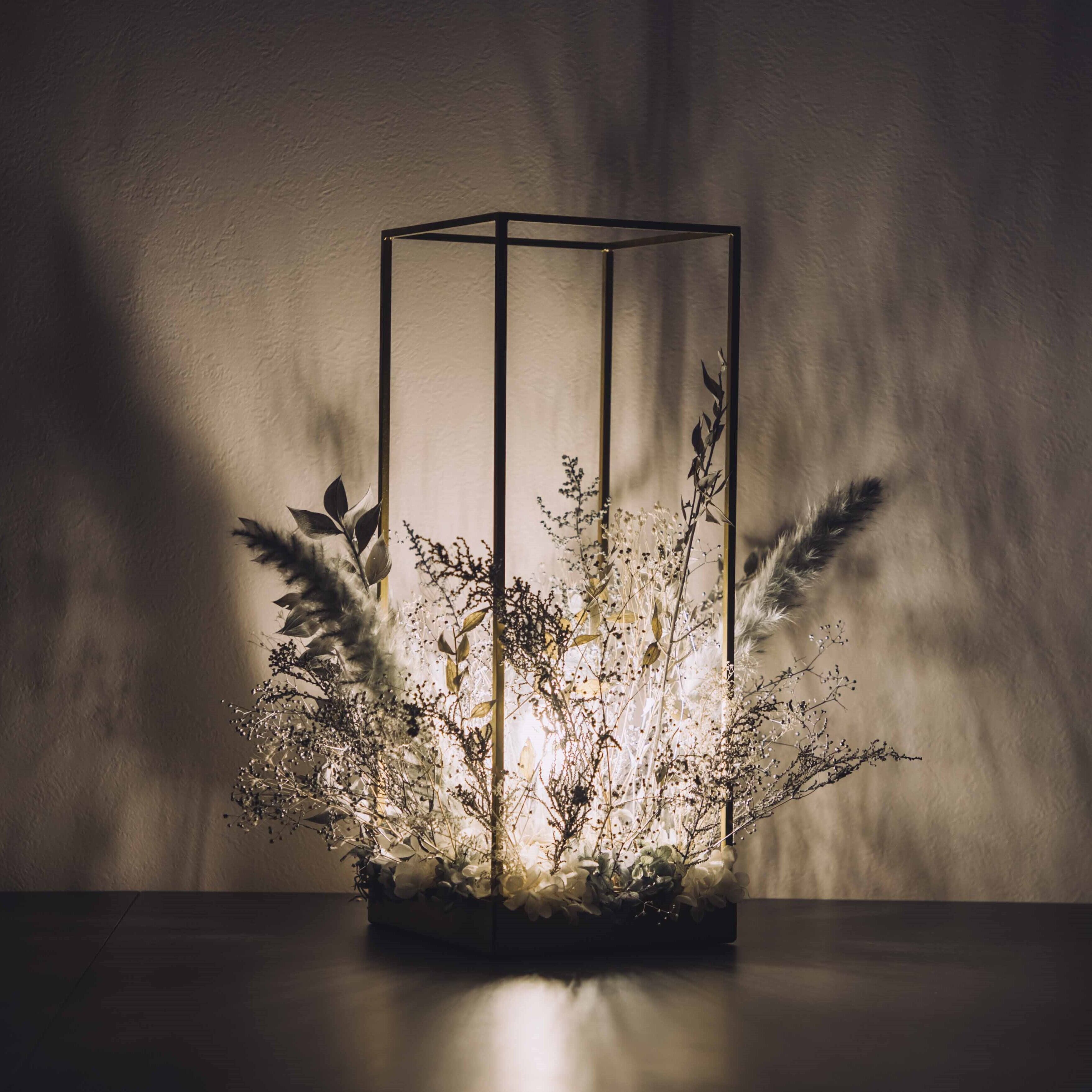 3. ドライフラワーを中心に一部プリザーブドフラワー、アーティフィシャルフラワーを使用しております。ドライフラワーやプリザーブドフラワーは経年変化によって色合いが変わっていきますが、その変化もお愉しみいただけましたら幸いです。